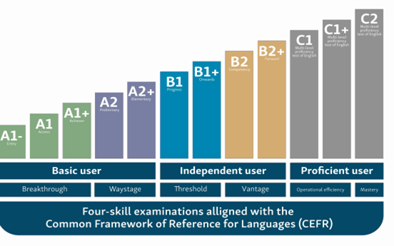 این آزمون به گونه ای طراحی شده اند که این امکان را برای متقاضیان فراهم کرده تا درصورت نیاز ،تنها در یک یا دو مهارت شرکت کرده و مدرک معتبر بین المللی زبان جهت ارائه به دانشگاه و یا کارفرما را کسب کنند. داوطلبان در مورد مهارت های مختلف زبانی ممکن است نقاط قوت و ضعف داشته باشند، به عنوان مثال ممکن است در نوشتن قوی تر از صحبت کردن باشند. بنابراین، داوطلب میتواند سطح متفاوتی را برای هر مهارت انتخاب کند. به عنوان مثال، یک داوطلب ممکن است خواندن و نوشتن را در سطح صلاحیت B2 و مهارت صحبت کردن را در سطح B1 انتخاب نماید. بدین ترتیب ، گواهینامه نتیجه داوطلب بر اساس سطح او در هر یک ازمهارت ها ارزیابی و صادر می گردد.